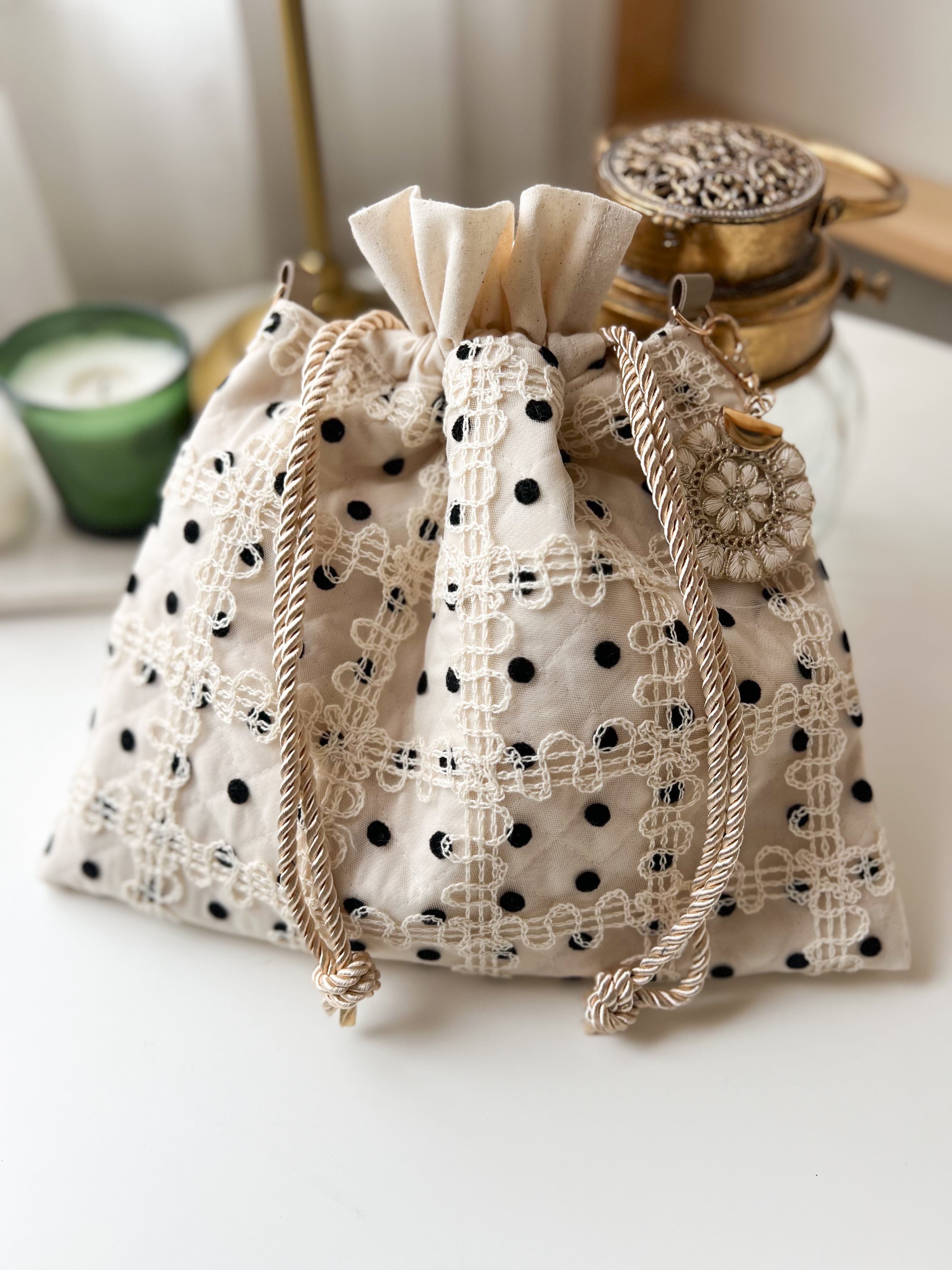 white&whiteシリーズ ショルダー巾着型 ドット小