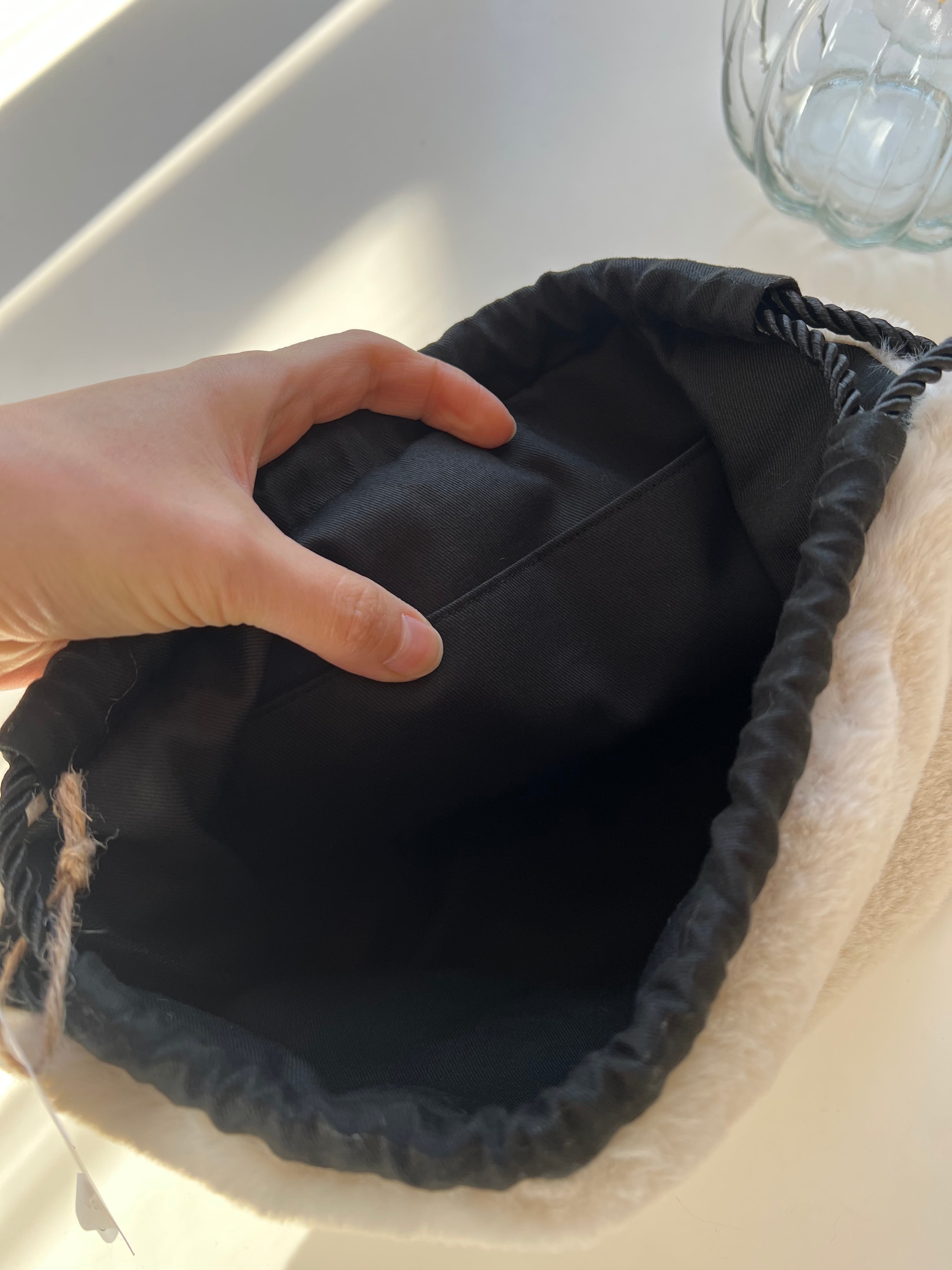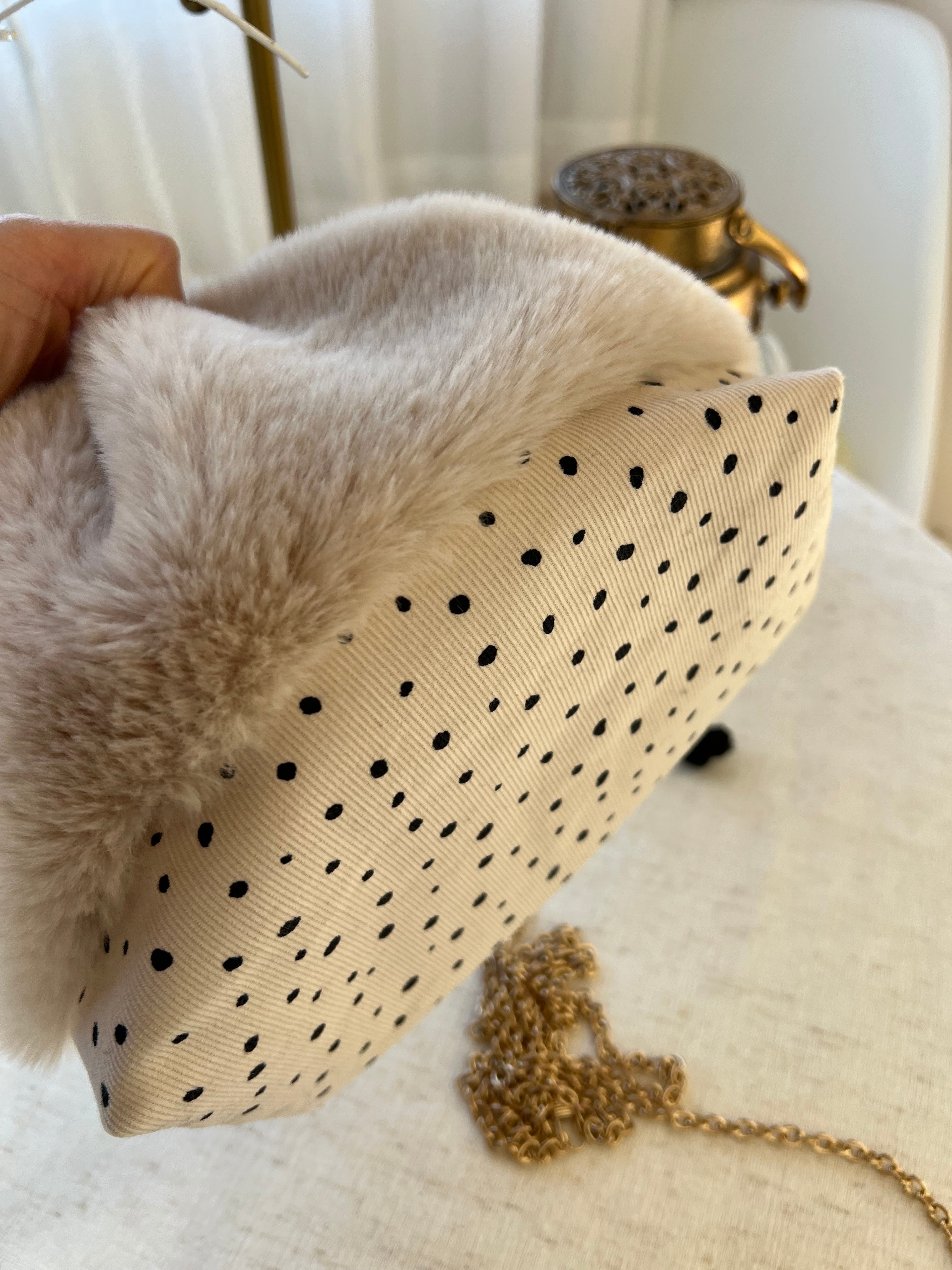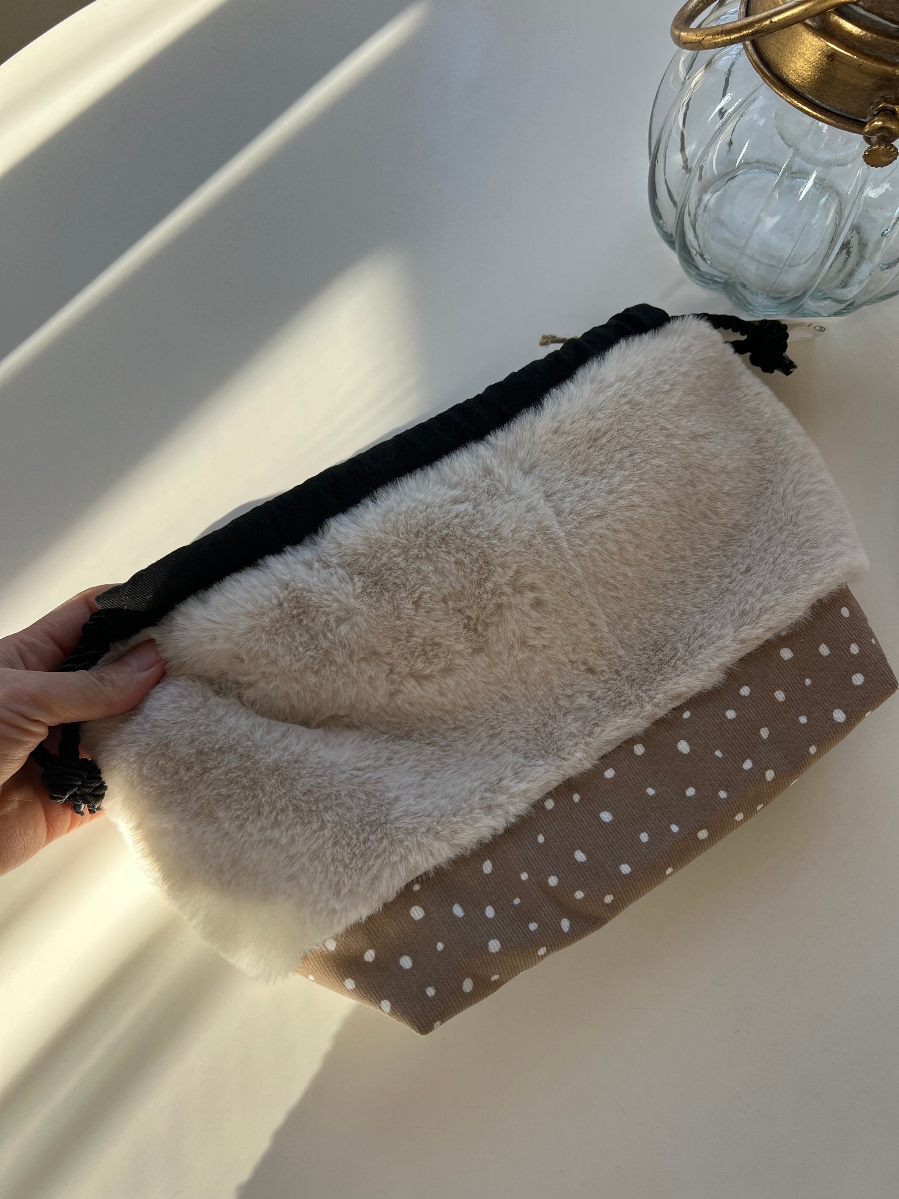 ふわふわのファーとコーデュロイ生地のドット柄。