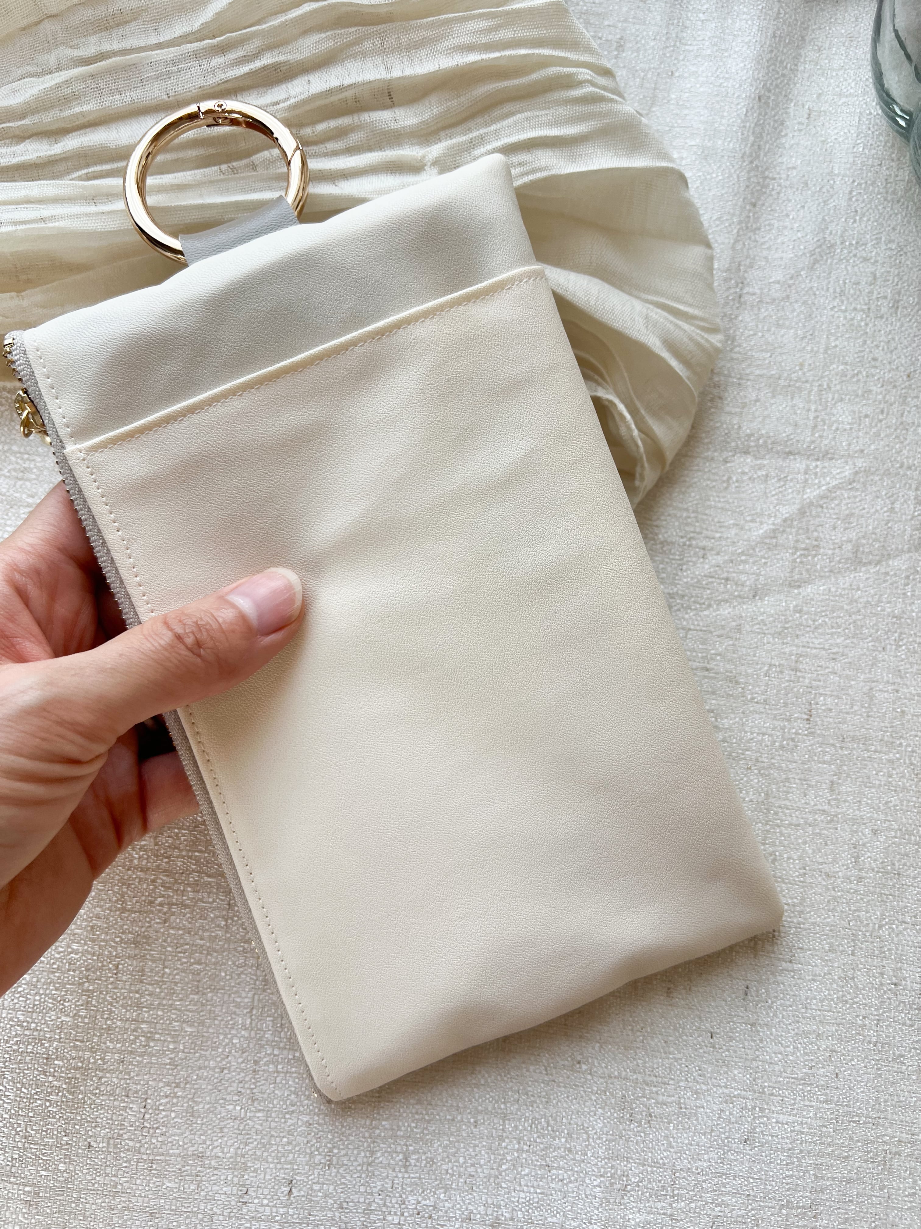 ポーチの外側にはスマホをぶら下げるためのカラビナが