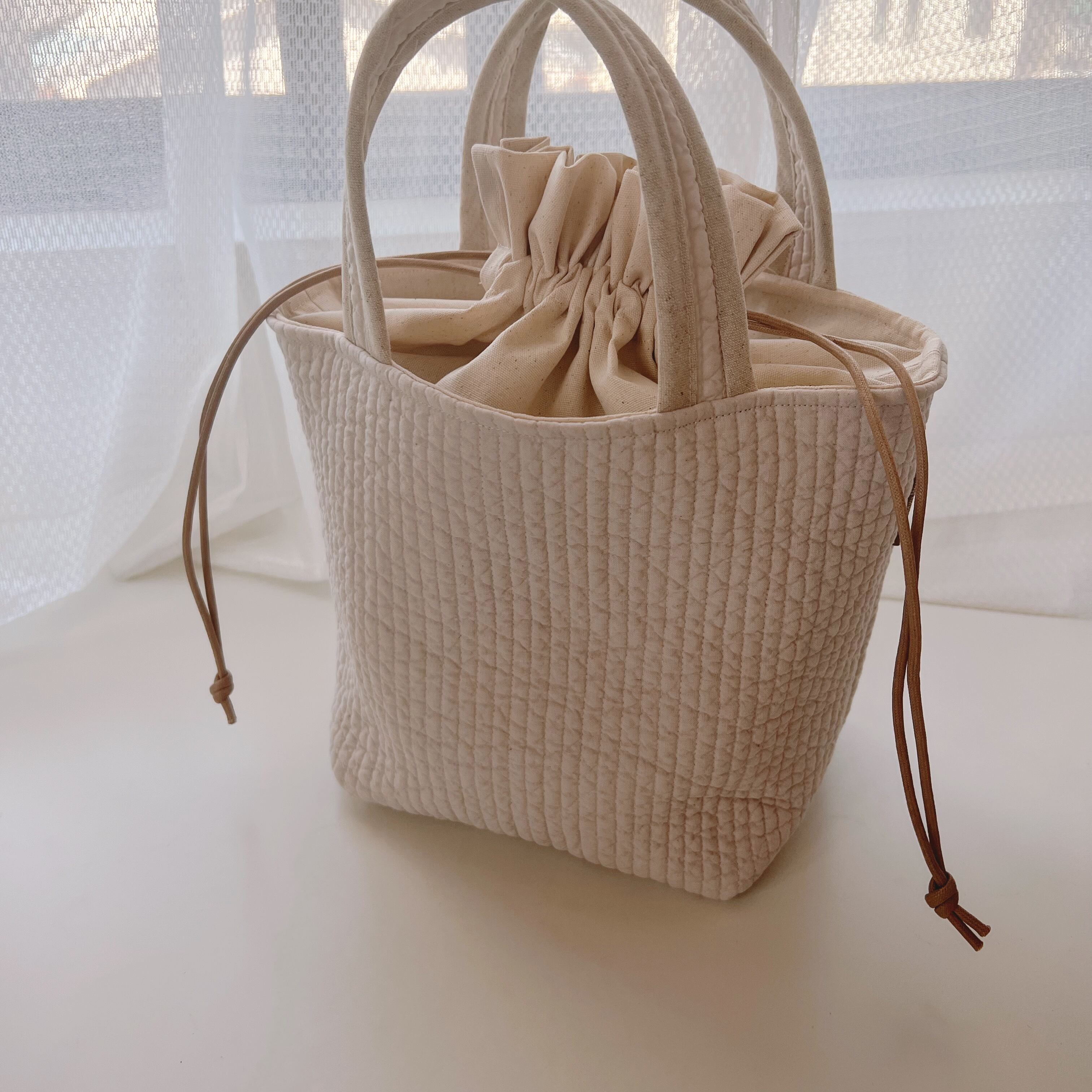 ヌビ巾着 ベージュ✖️ ピンクベージュ